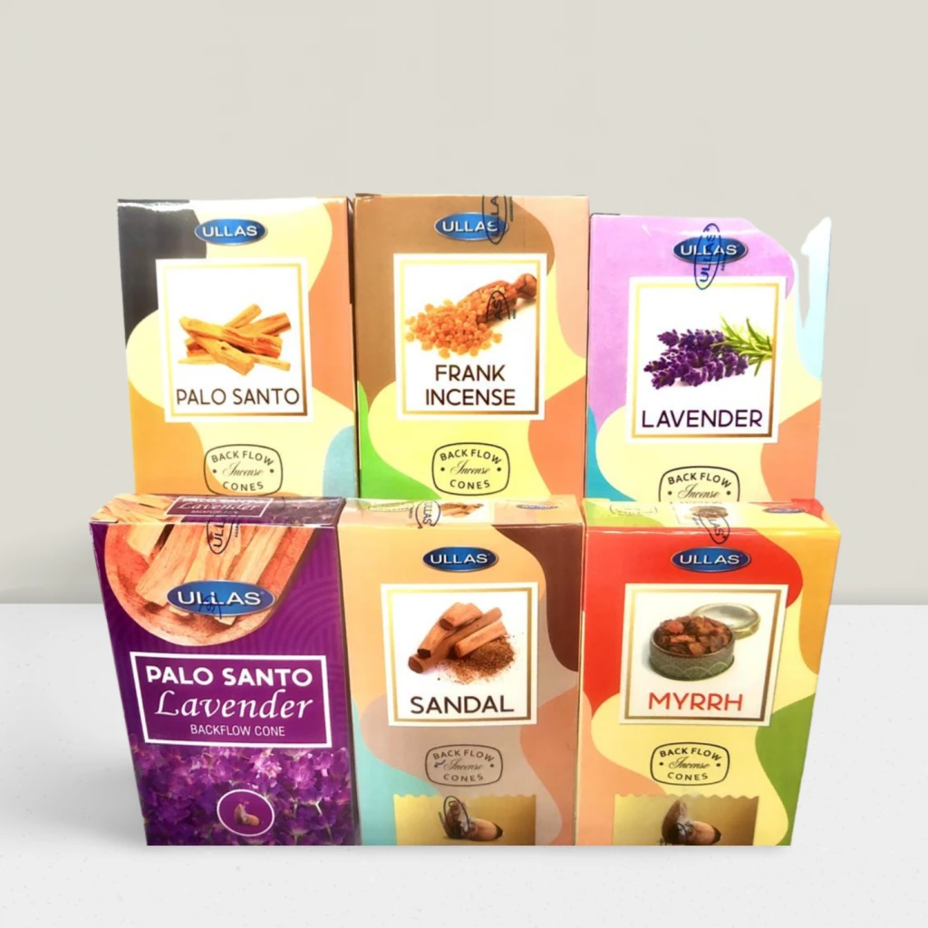 Sahumerios en cono para cascada de humo decorativa. Cada envase contiene 12 unidades.