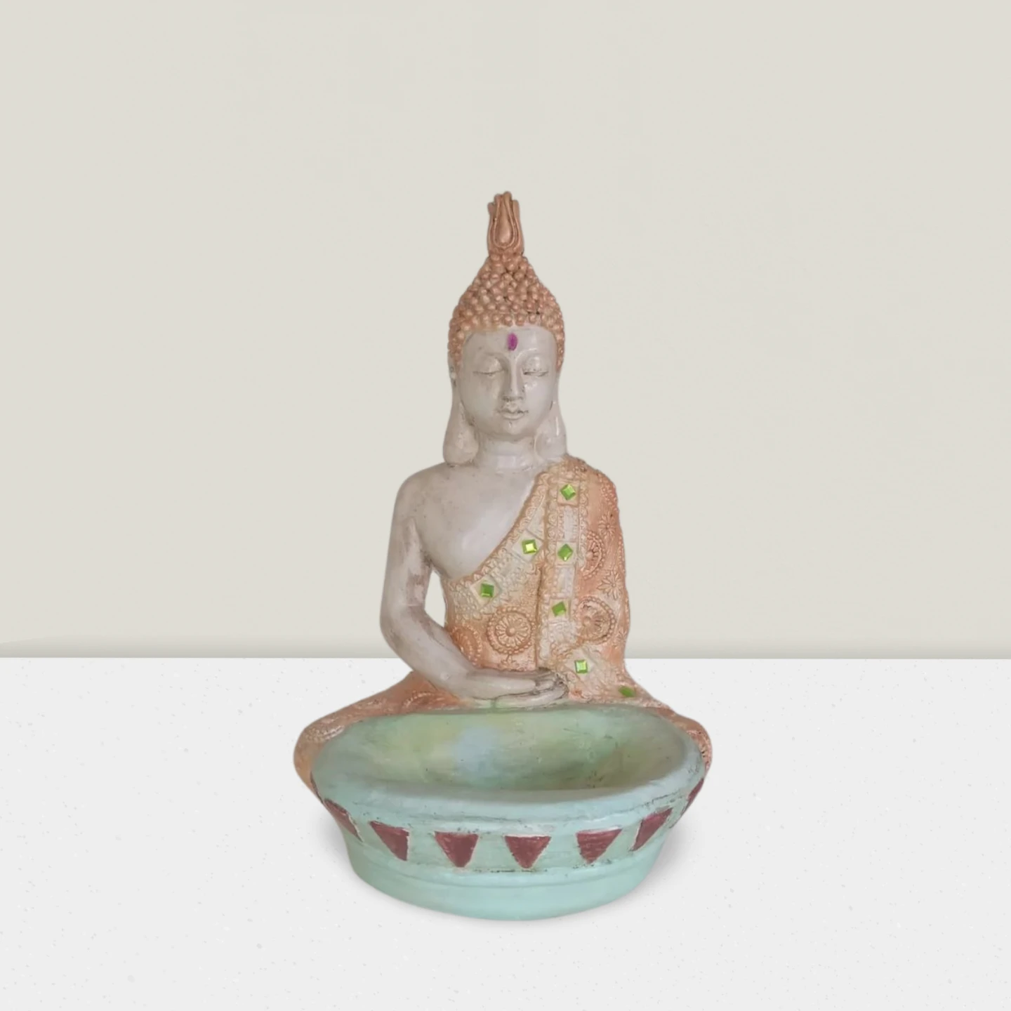Esta estatua de Buda es un símbolo poderoso de paz interior, sabiduría y serenidad. Colocarla en tu hogar o espacio personal ayuda a crear un ambiente de tranquilidad y equilibrio. Representa la iluminación y la meditación, inspirando a quienes la contemplan a cultivar la paz mental y la compasión.
