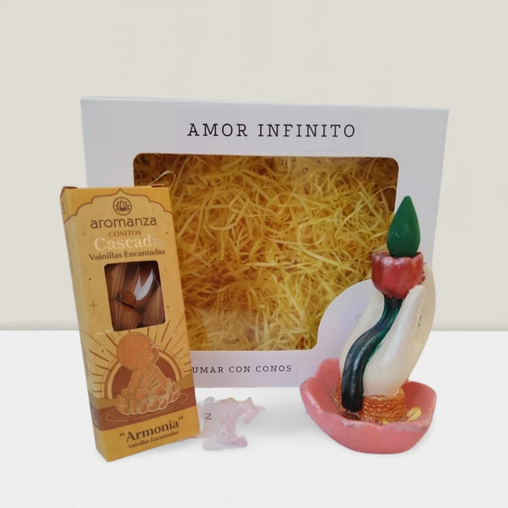 El Kit de Sahumar con Conos - Amor Infinito está diseñado para quienes desean llenar su hogar y su vida de energía amorosa, cálida y armoniosa. Este kit combina elementos únicos que inspiran la apertura emocional, el amor propio y la conexión afectiva con los demás.