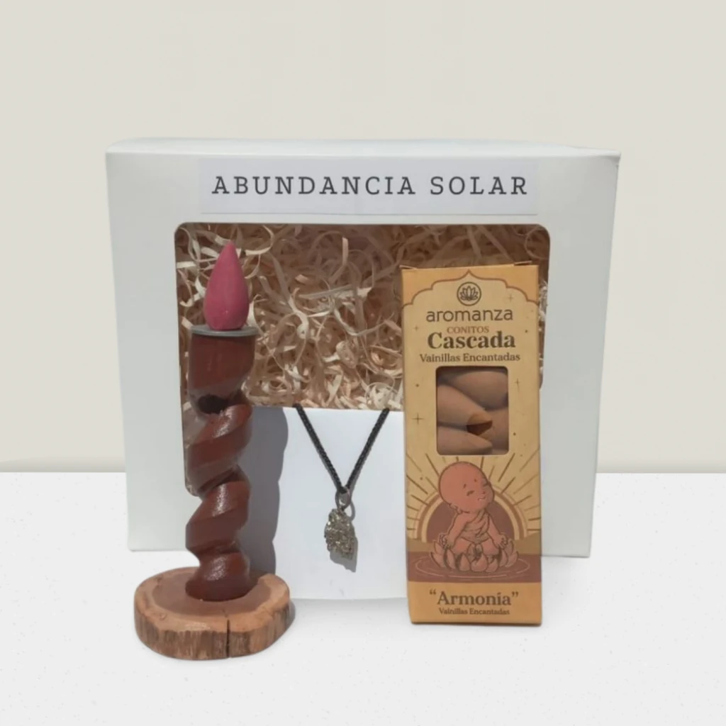 El kit de sahumar con conos - Abundancia solar está diseñado para atraer prosperidad, energía positiva y vitalidad a los espacios. Es perfecto para quienes buscan potenciar su conexión con la abundancia y la creatividad.