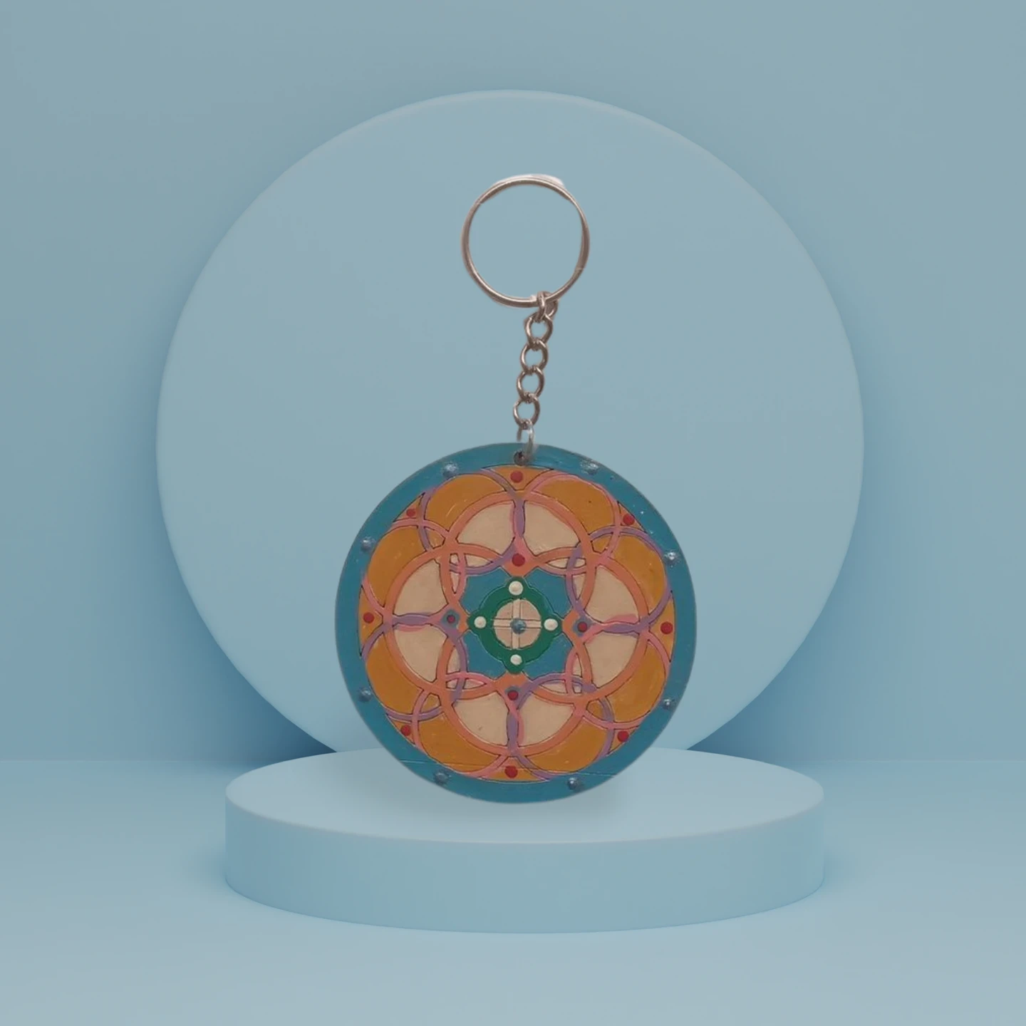 - Meditación y Concentración: En prácticas de meditación, los mandalas se utilizan para centrar la mente y ayudar a lograr un estado de meditación profunda. Un llavero mandala puede servir como un recordatorio de mantenerse enfocado y presente en el momento.