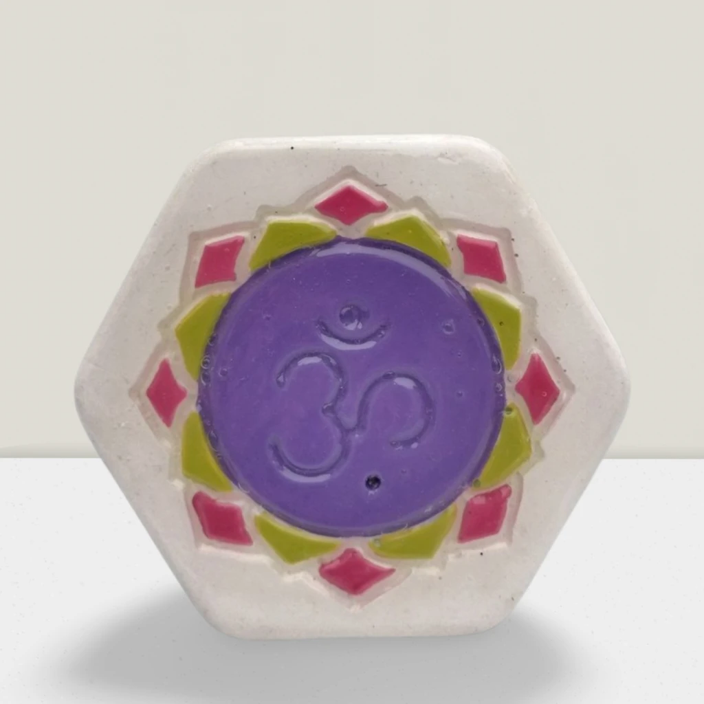 Este portasahumerios con el símbolo "Om" es un poderoso elemento de armonización y conexión espiritual. El símbolo "Om" representa el sonido primordial del universo, evocando la vibración de la creación y la unión con lo divino. Al utilizarlo para sostener tus sahumerios, te invita a meditar y a conectar con tu ser interior mientras el humo sagrado purifica y eleva la energía de tu espacio.