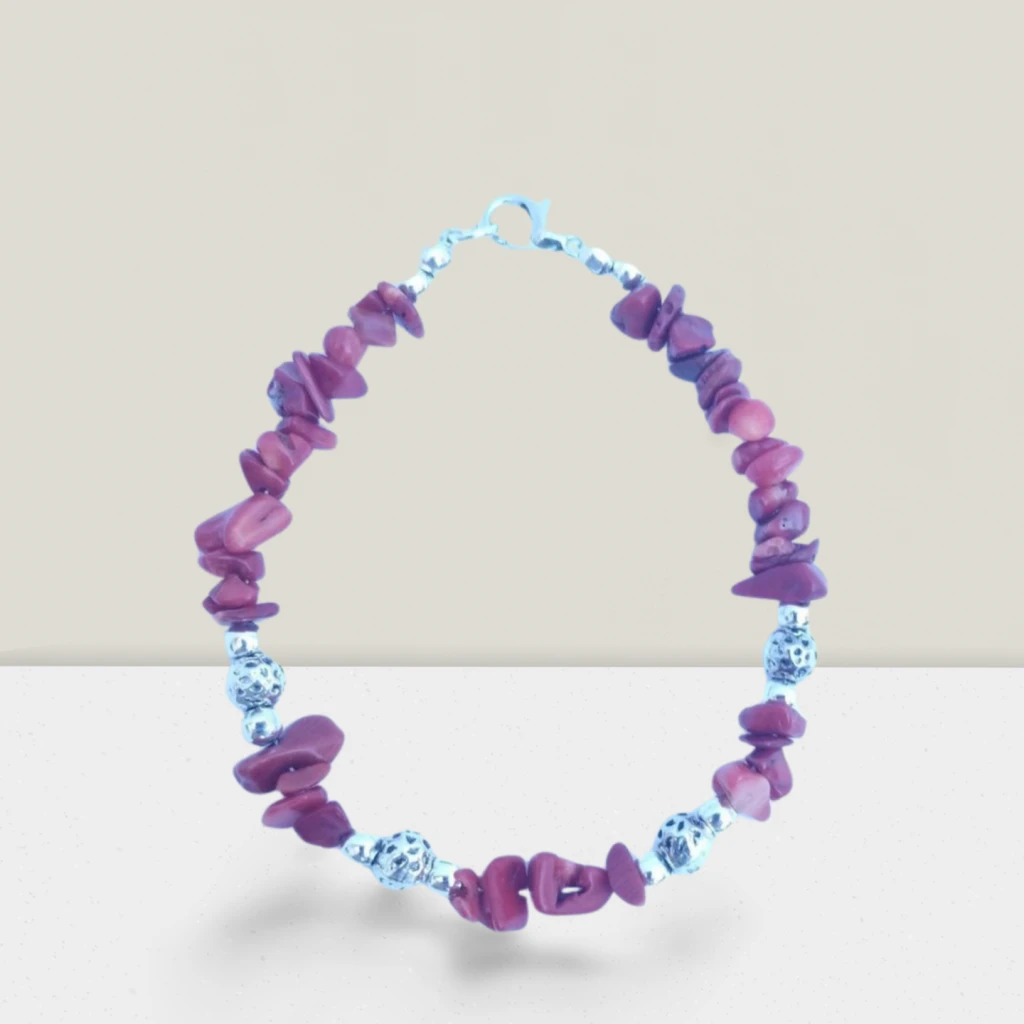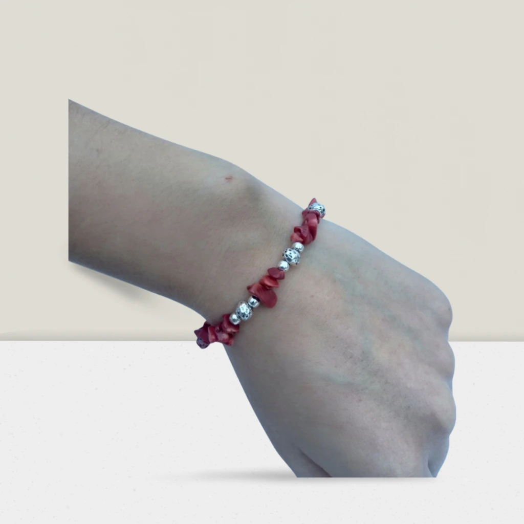 Pulsera artesanal elaborada con cuentas de coral natural. Este amuleto marino es reconocido por brindar protección y fortalecer la energía vital. El coral ayuda a liberar miedos profundos, especialmente el miedo a la muerte, aportando calma, confianza y alegría en el camino de la vida. Ideal para quienes buscan renovar su energía y caminar con mayor serenidad.